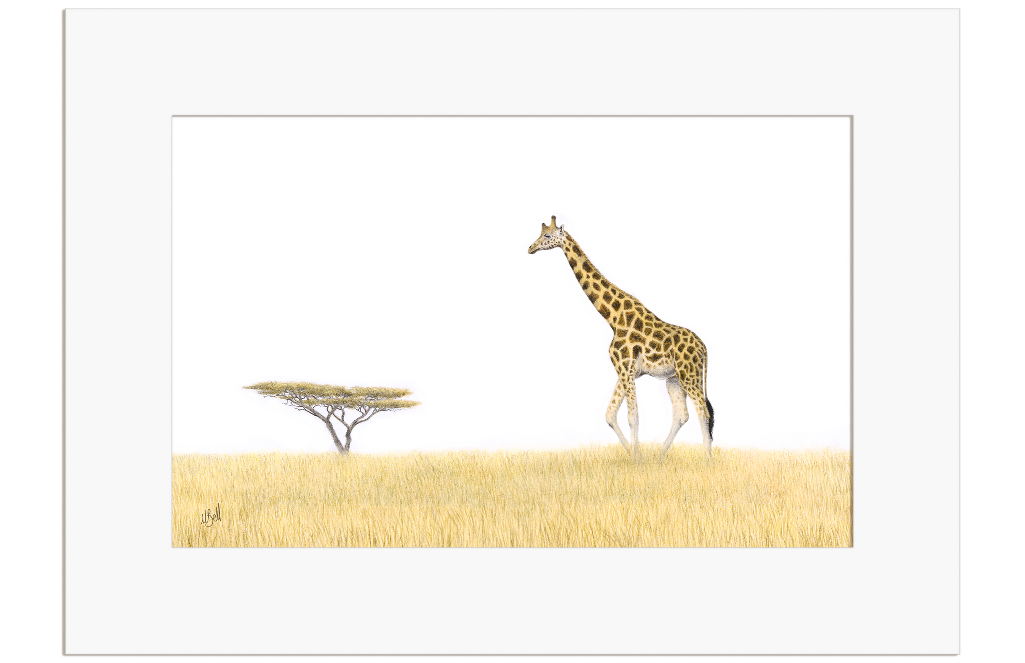 Giraffe and an Acacia Tree drawing by Matthew Bell