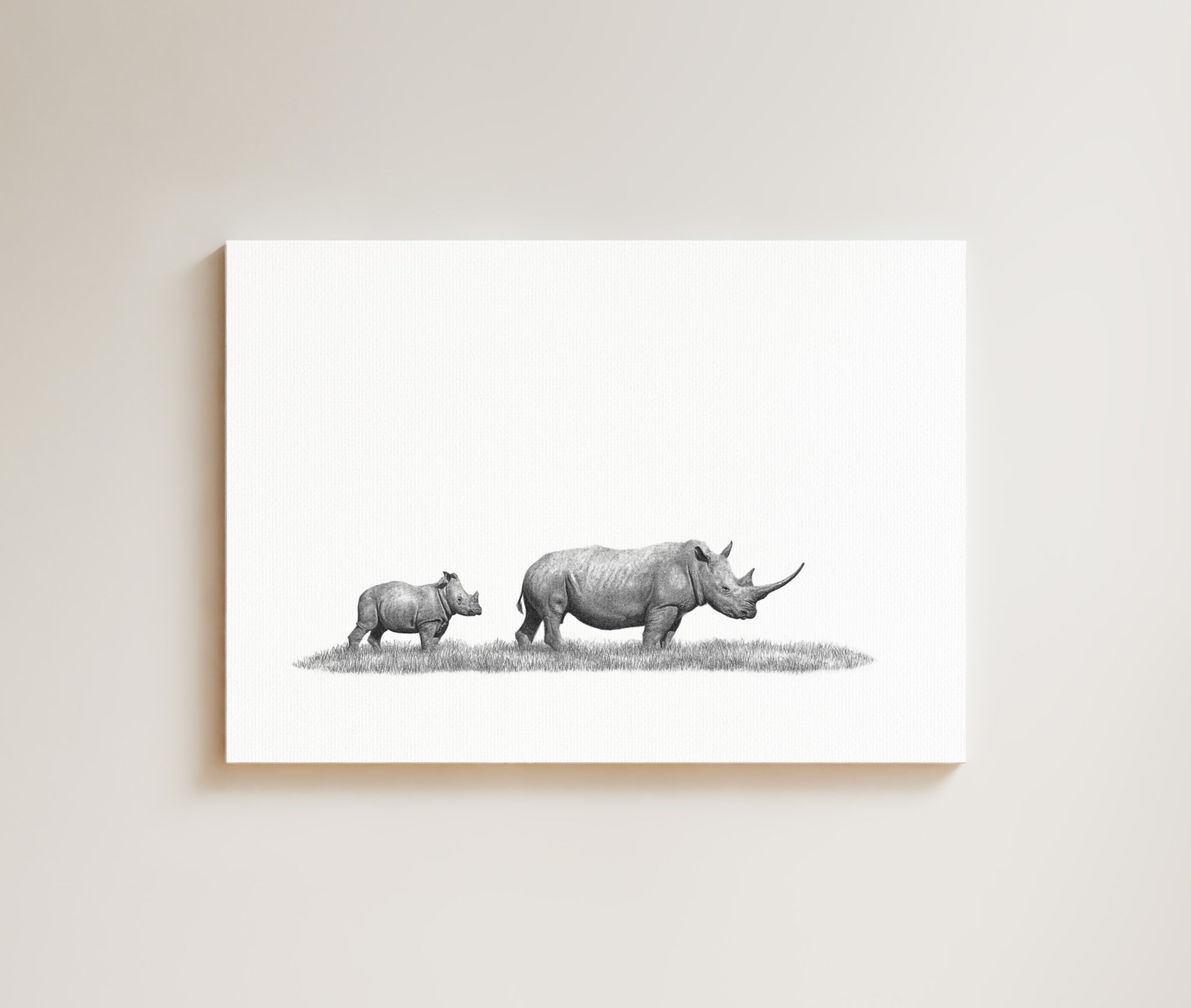White Rhino Mother and Calf (WR5) on Canvas