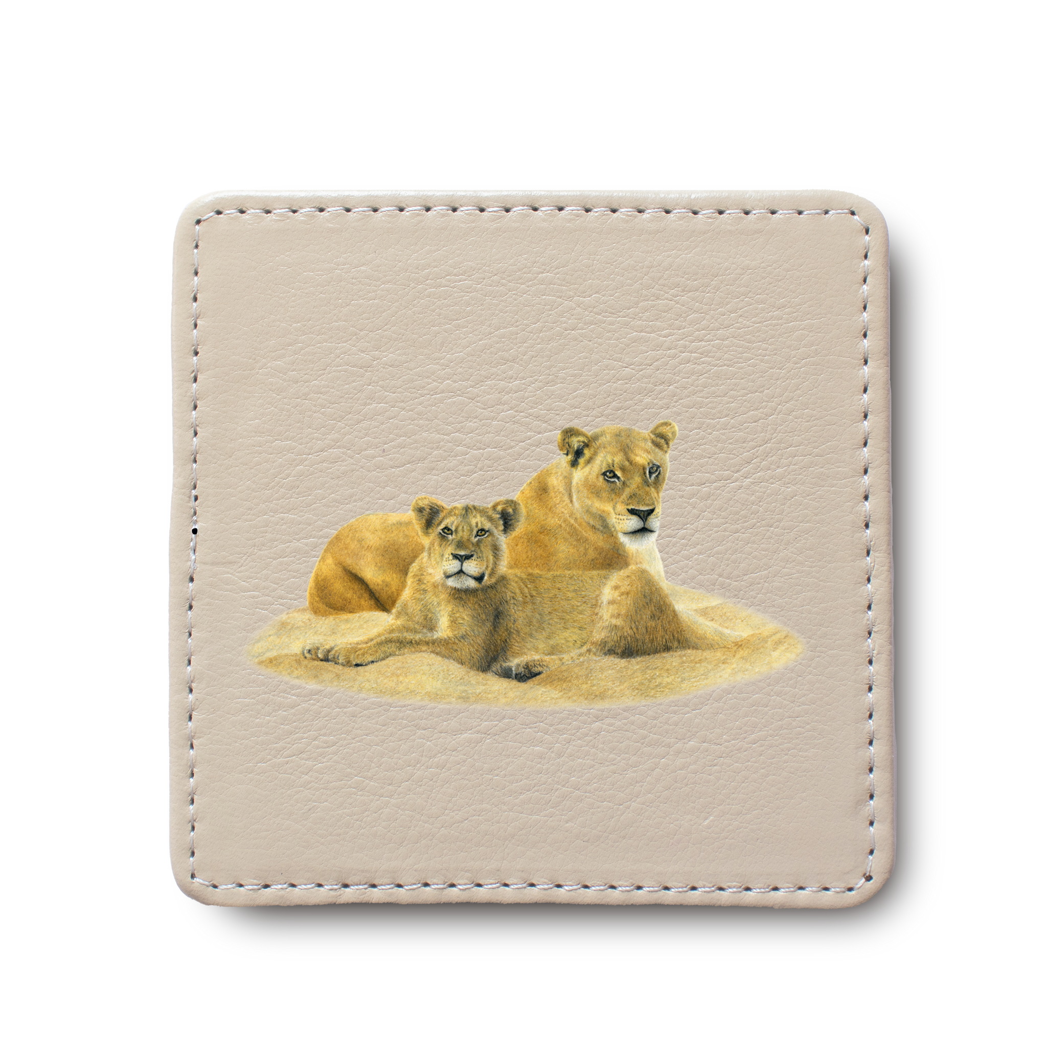 Lioness with Cub Leather Coaster
