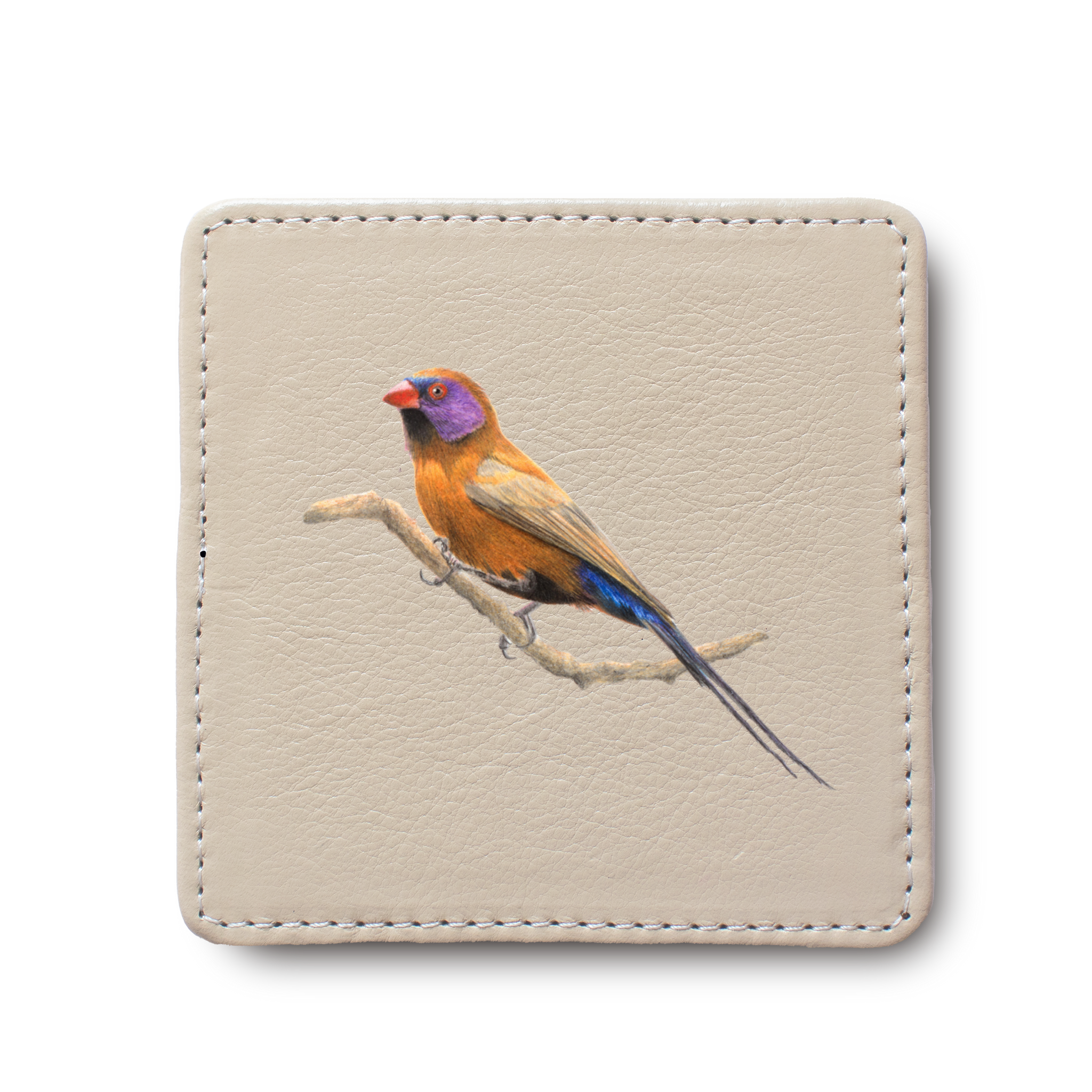 Violet Eared Waxbill Leather Coaster